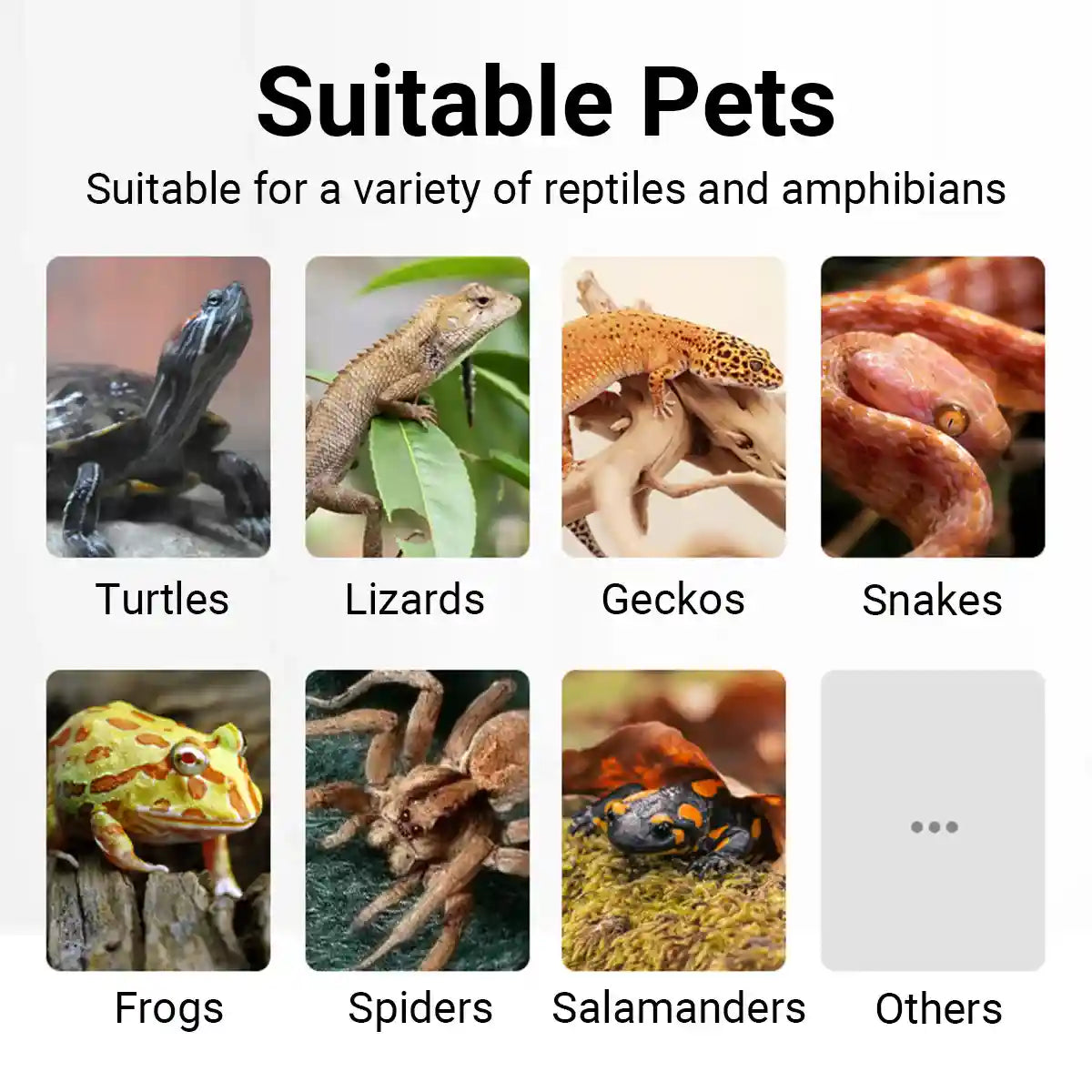 • Suitable For: Turtles, lizards, geckos, snakes, frogs, spiders, salamanders, etc.