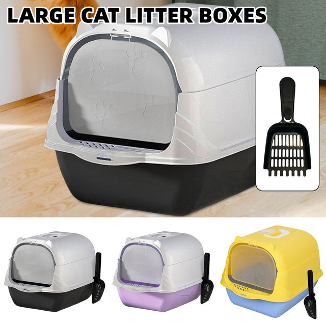 Oversized Enclosed Cat Litter Box with Flip Lid and Swing Doors