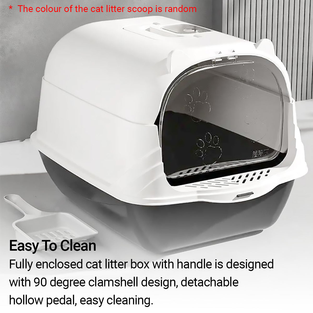 Upgrade your pet’s toileting routine with this enclosed cat litter box, featuring a dual-entry swing door and a 90° flip-top lid for easy cleaning. Designed to minimise mess and block odours, this cat litter box provides privacy and space for larger cats. The automatic rear door closure prevents litter splashes and seals odours effectively. With a built-in handle for portability and a bonus random-colour scoop, it’s the ideal litter solution for homes seeking hygiene and convenience.