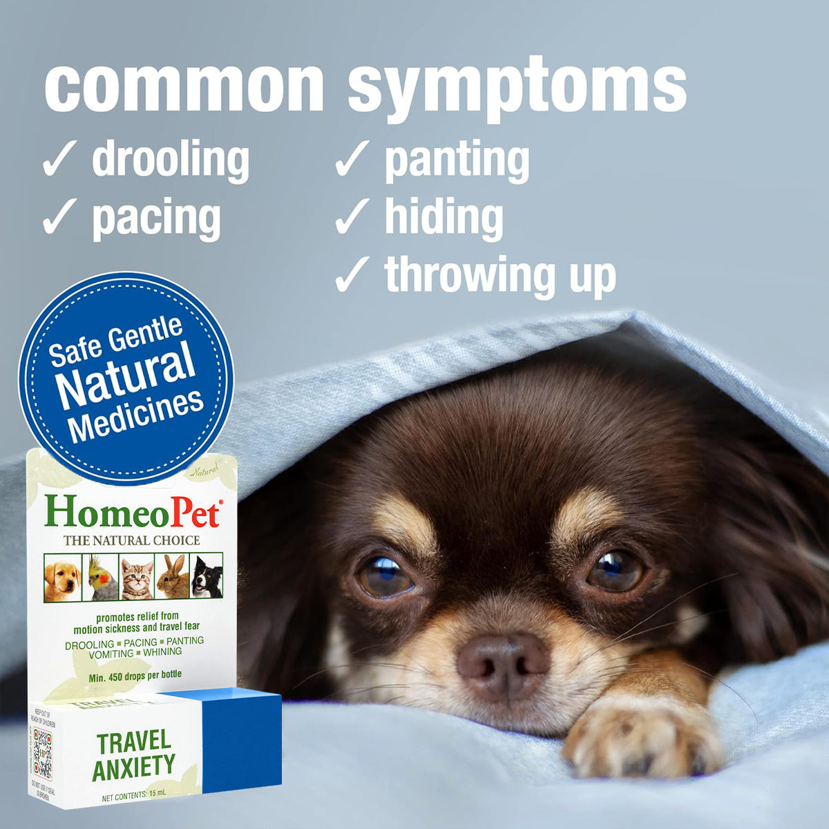 Relieves travel anxiety and motion sickness in dogs and cats