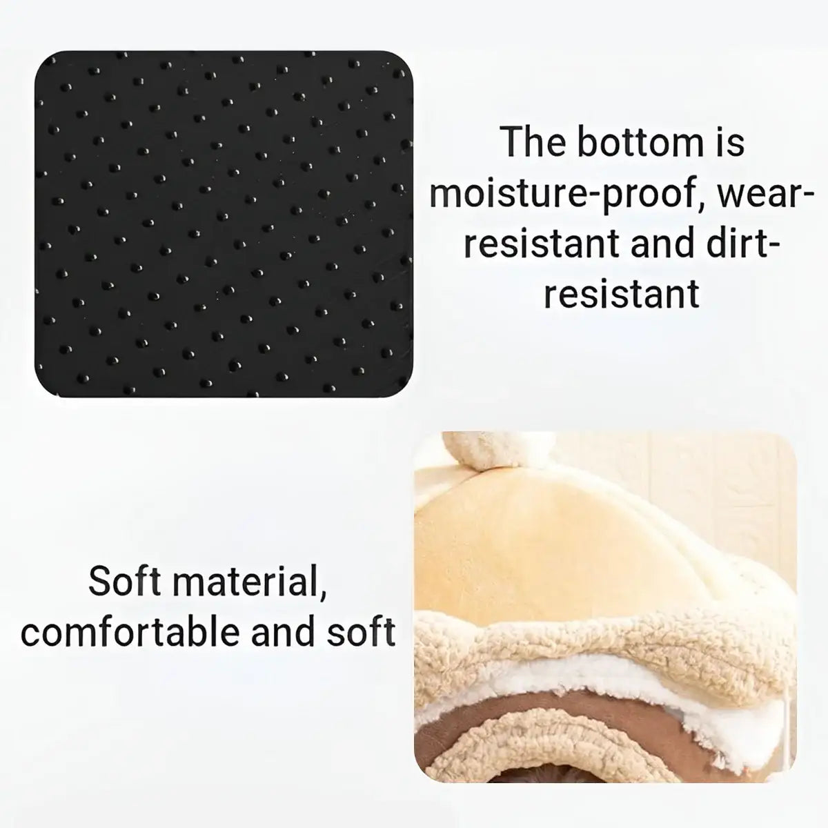 Treat your pet to warmth and whimsy with this cat house bed shaped like a sweet ice cream treat. Ideal for cats and small dogs, this cat house bed offers an enclosed, cozy space for napping and lounging, especially during chilly seasons. Crafted from ultra-soft crystal velvet and flannel, it surrounds your pet in plush comfort. A built-in pom ball provides playful fun, while the anti-slip base ensures safety on hard floors. Stylish and functional, this charming cat house bed is as delightful to look at as it is to snuggle in.