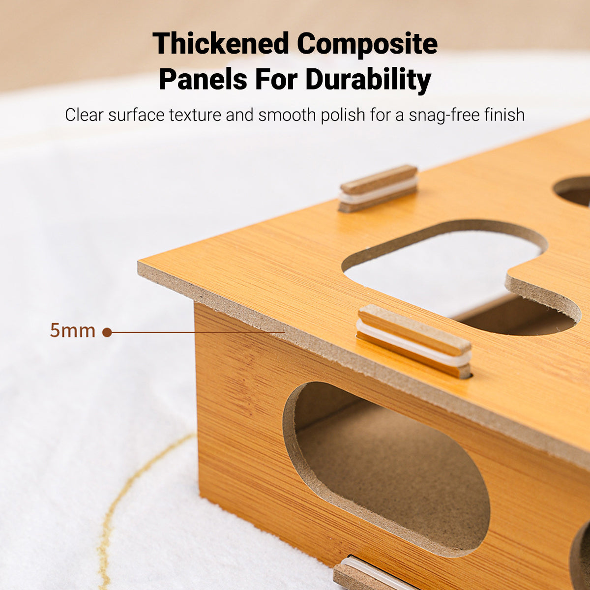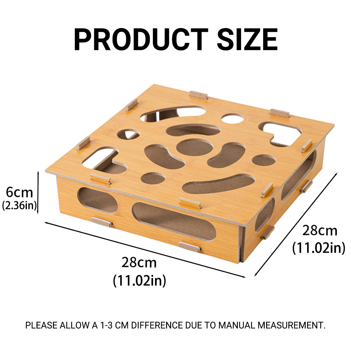 Keep your feline friend mentally and physically active with this interactive maze cat toy. Crafted from durable composite wood, the maze features bell balls and a spring-loaded feather that mimic prey movements, enticing your cat to chase, bat, and explore. This cat enrichment toy helps prevent boredom, encourages natural hunting instincts, and supports healthy activity levels. Whether used alone or with your help, this cat puzzle toy delivers hours of entertainment and engagement.