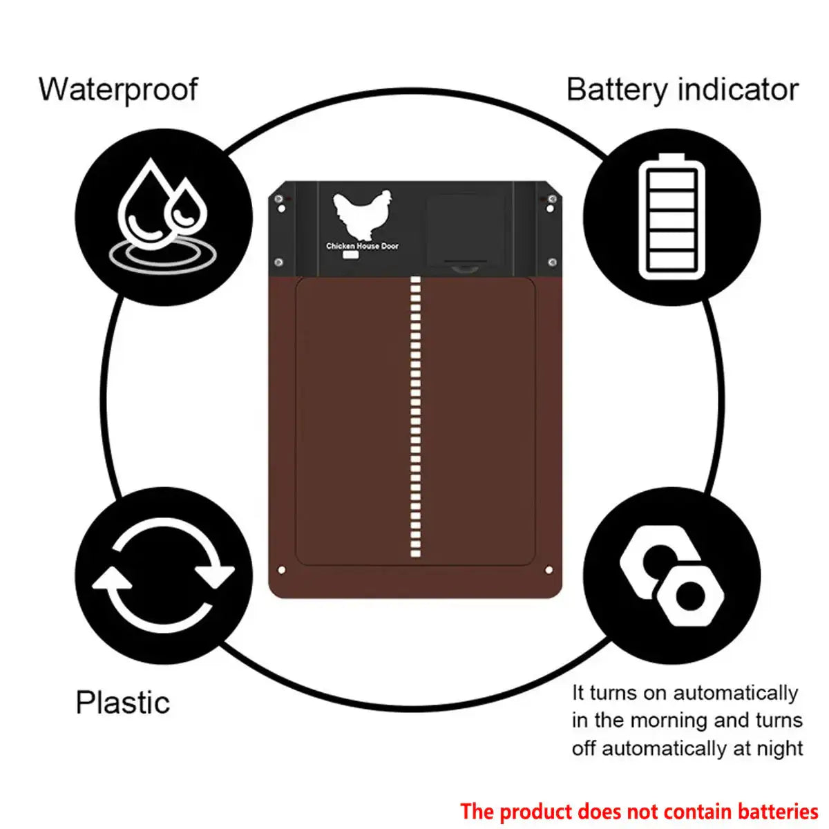Light Sensor Automatic Chicken Coop Door Battery Powered & Waterproof