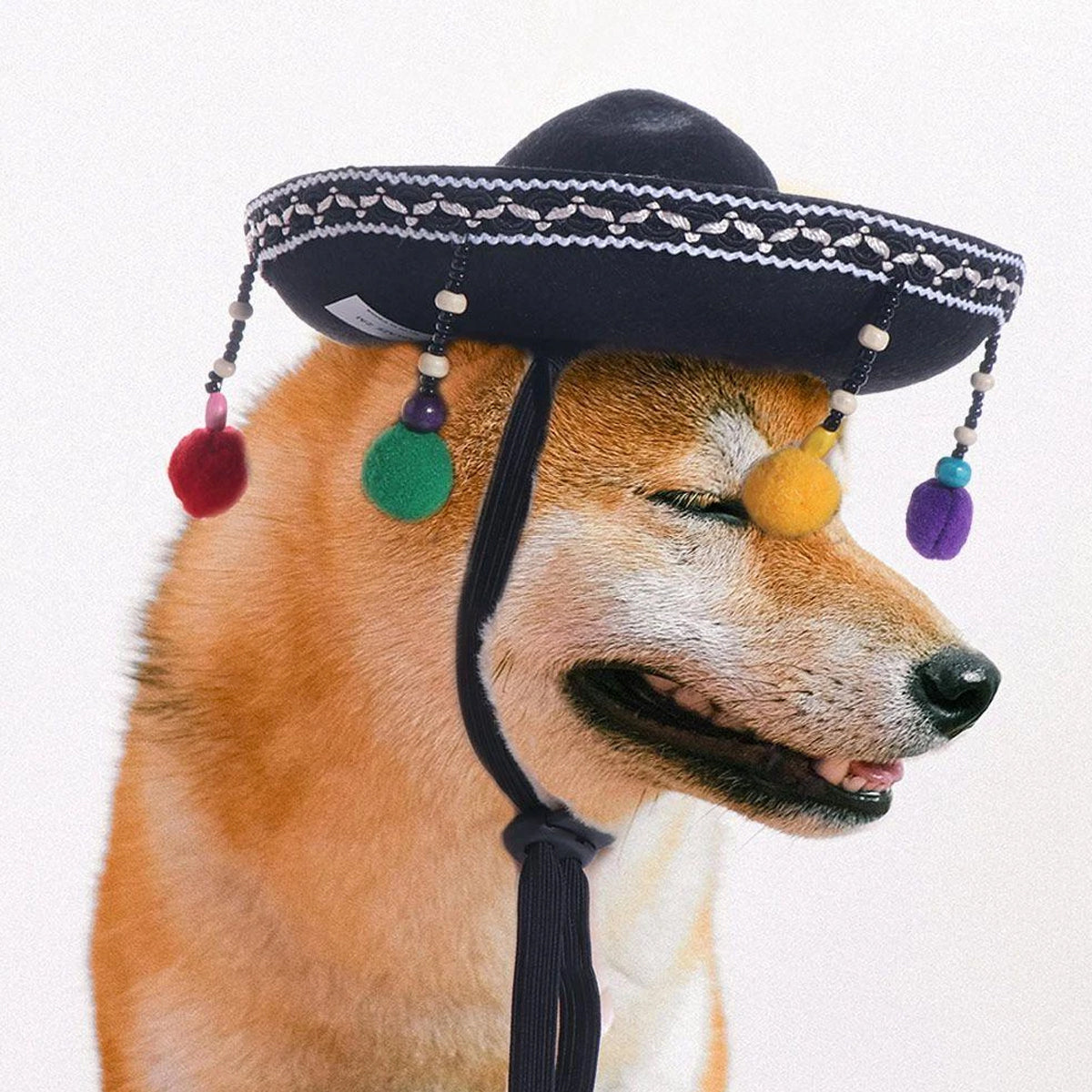 Mexican pet hat with pom poms adds festive flair for holidays, parades, and pet photos