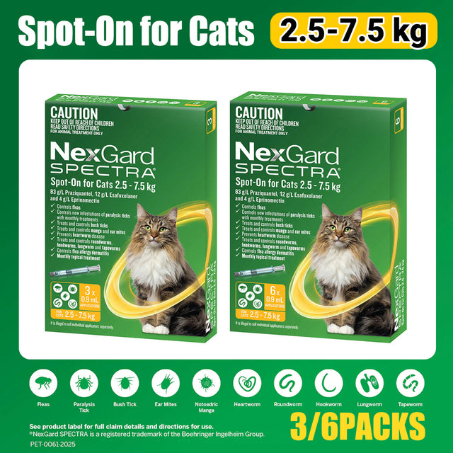 1 × NexGard Spectra for Cats 2.5–7.4kg (pack size as selected)