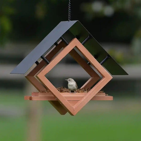 Hanging Wooden Bird Feeder With Metal Roof Fly-Through Outdoor Feeder