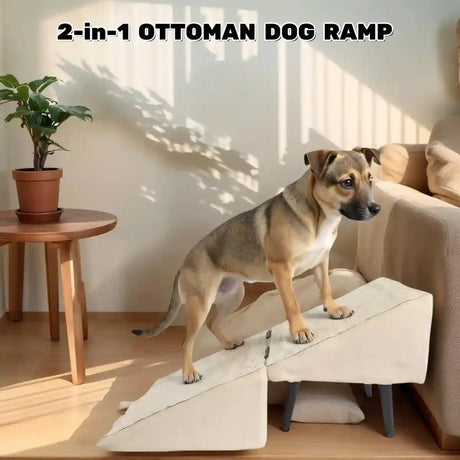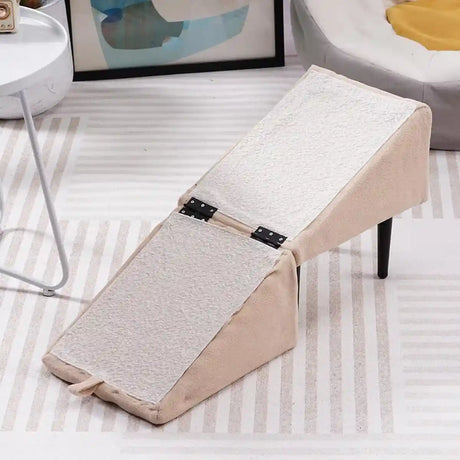 Khaki Wooden Pet Dog Stairs Ramp Dual-Function Foldable Step Ladder