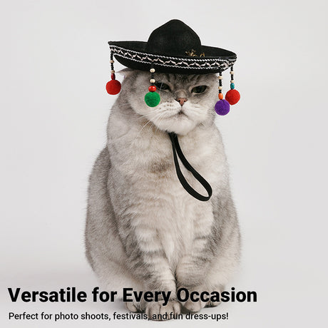 Mexican Pet Hat for Cats and Small Dogs Colorful Pom Poms Costume