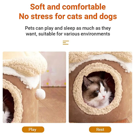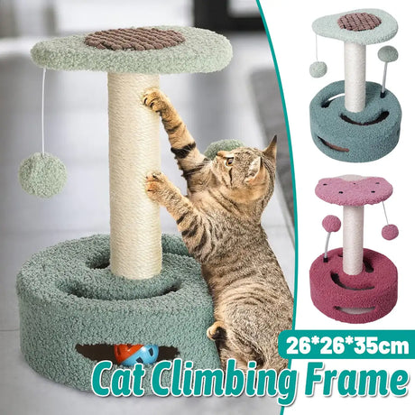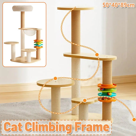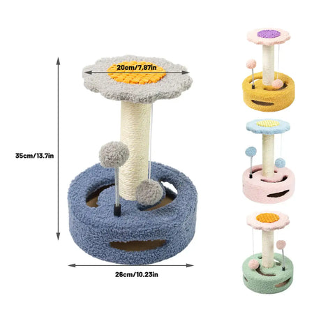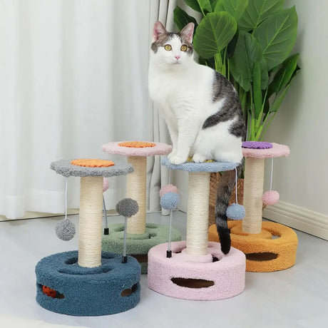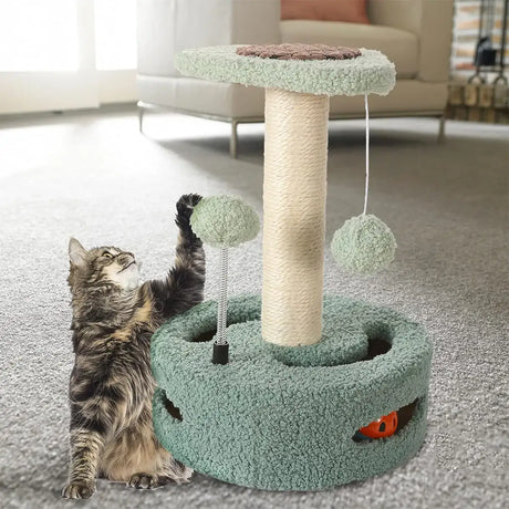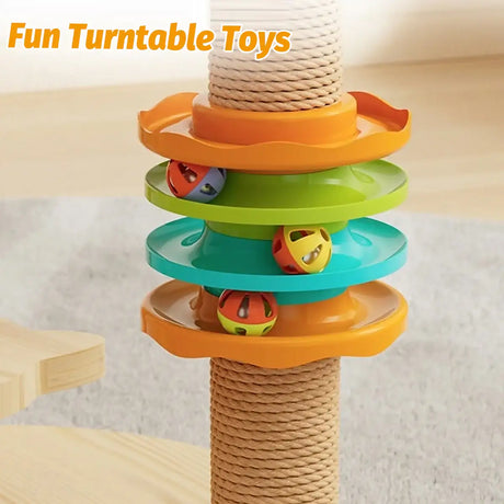 Space-Saving Cat Tower Bed with Scratcher & Toys for Multi-Cat Homes