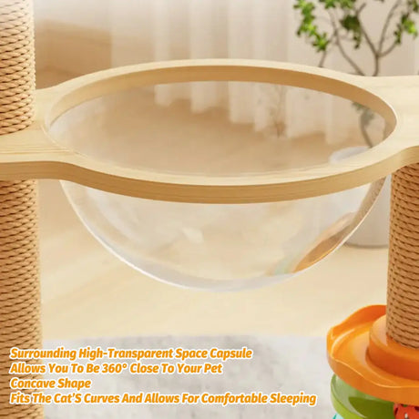 Multifunctional Cat Climbing Frame with Capsule Bed and Turntable Toys