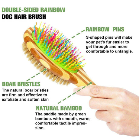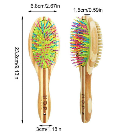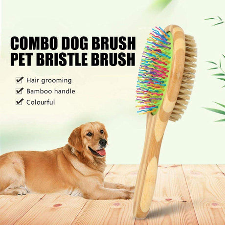 Double-Sided Pet Comb with Bamboo Handle Flea Comb & Knot Brush for Dogs and Cats