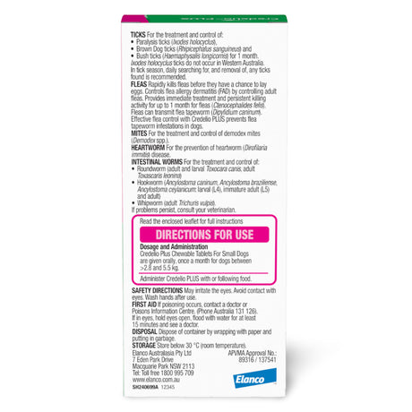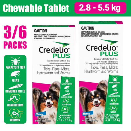 From $5730Unit price /UnavailableCredelio Plus Chewable Tablets For Small Dogs 2.8-5.5kg