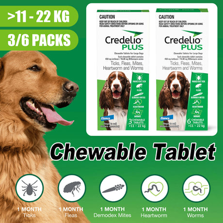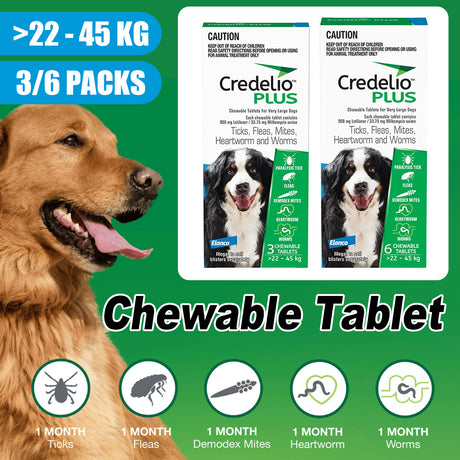 $1585Unit price /UnavailableCredelio Plus Chewable Tablets For Extra Large Dogs 22.1-45kg