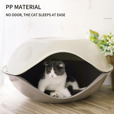 Semi Enclosed Eggshell Cat Bed for Indoor Use