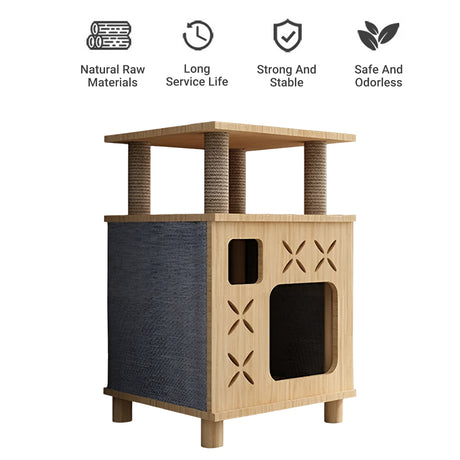 $7763Unit price /UnavailableSolid Wood Cat House With Scratching Board Double-Layer Design