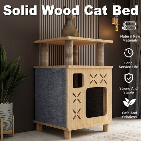 Solid Wood Cat Bed House with Climbing Platform Modern Pet Furniture