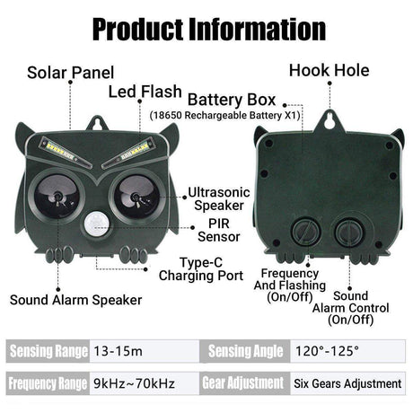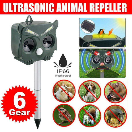 Solar Powered Ultrasonic Bird Repeller Outdoor Animal Deterrent Garden Device