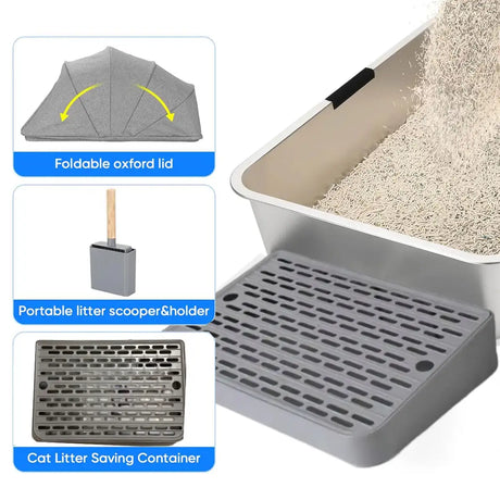 Stainless Steel Cat Litter Box Leak-proof Sand Large Space Litter Box