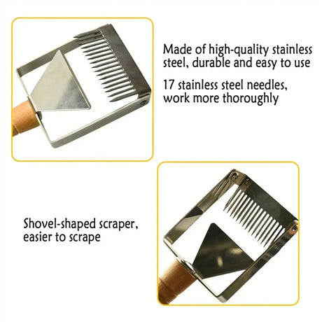 Stainless Steel Honey Scraper with 17 Tines and Wooden Handle