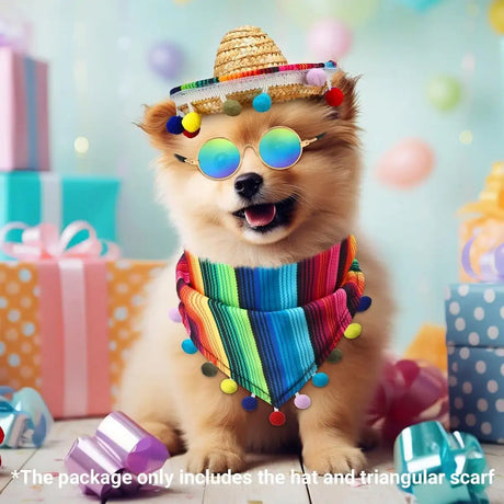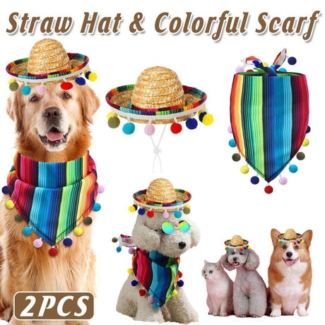 From $2136Unit price /UnavailableStriped Triangle Pet Towel & Fur Ball Straw Hat Scarf Set, Colorful Pet Accessories