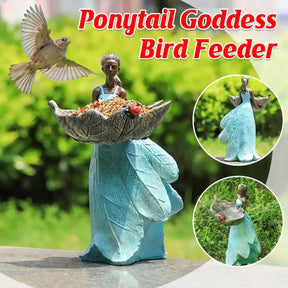 Add charm and function to your garden with this decorative bird feeder featuring a whimsical girl sculpture in a flowing leaf-textured dress. Designed with a wide leaf-shaped bowl, it’s perfect for serving seeds or water to birds while doubling as a beautiful ornament for patios, balconies, or garden beds. This bird feeder is crafted from durable resin, built to withstand outdoor conditions, and features intricate sculpted detailing for visual appeal. If you're looking for a unique and elegant garden bird feeder, this piece combines practicality with artistic design.