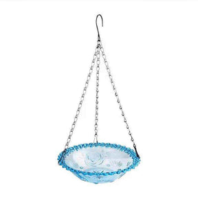 Hanging Glass Bird Feeder Decorative Outdoor Bird Feeding Bowl with Metal Chain