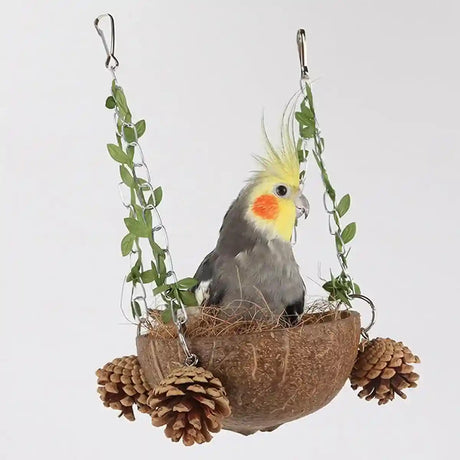 $1404Unit price /UnavailableCoconut Bird's Nest for Parrots Natural Habitat with Swing & Hammock
