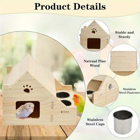 Multifunctional Wooden Bird House Villa with Feeder Natural Nesting Box
