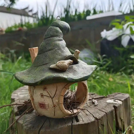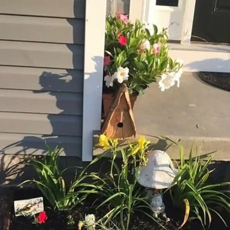 Whimsical Garden Decor with Hanging Birdhouse in Mushroom Style