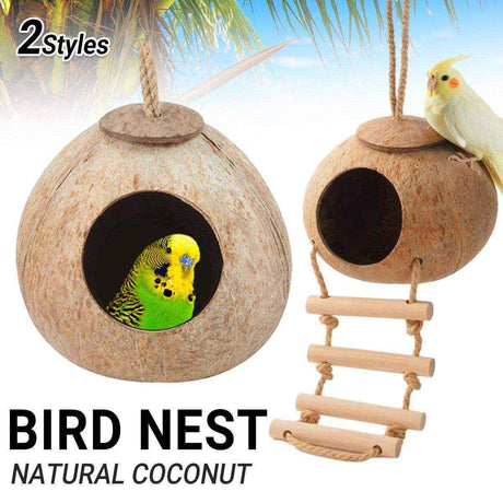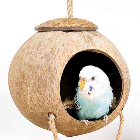 Pet Parrot Nest Wooden Bird House Natural Coconut Shell Feeder