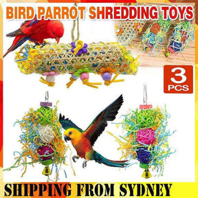 3PCS Bird Parrot Shredding Toys Hanging Cage