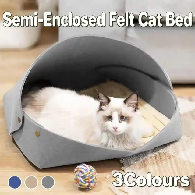 Semi-Enclosed Felt Cat Bed Comfortable & Stylish Cat Nest 3 Colors