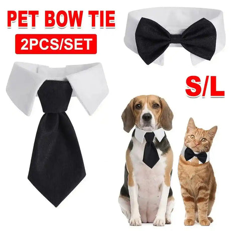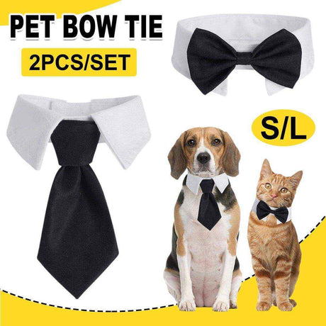 Designer Dog Collars & Designer Cat Collar Set Bow Tie and Necktie Design