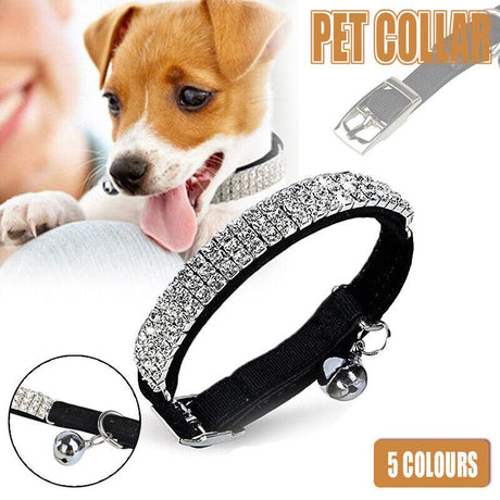 Designer Pet Collars For Cats and Dogs with Rhinestones 5 Colours