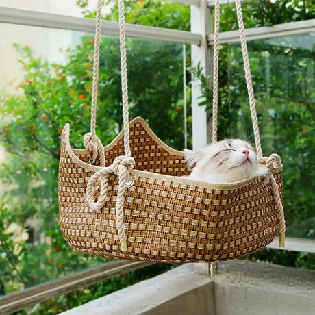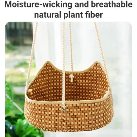 Handmade Cat Hammock Bed Breathable Straw Hanging Pet Rest with Hooks