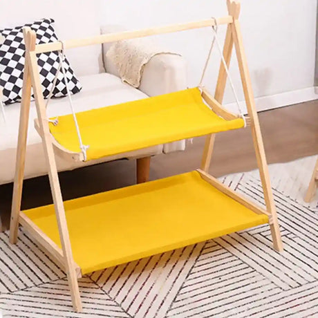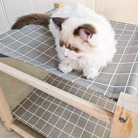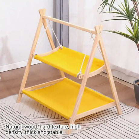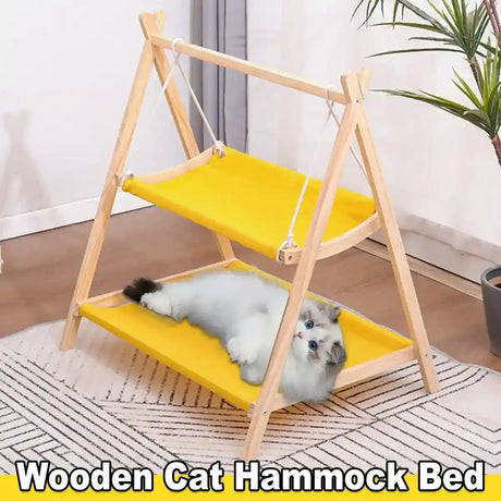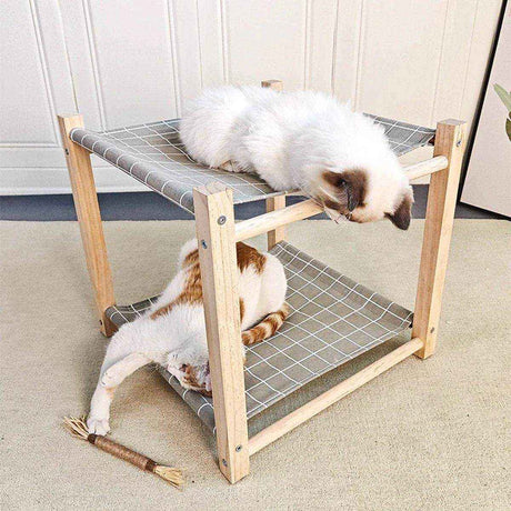 Wooden Double Layer Cat Hammock Bed Removable Washable Pet Swing Basket Nest