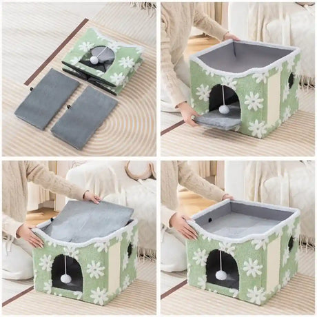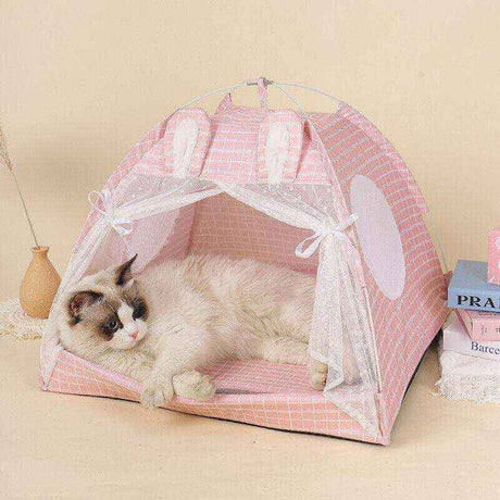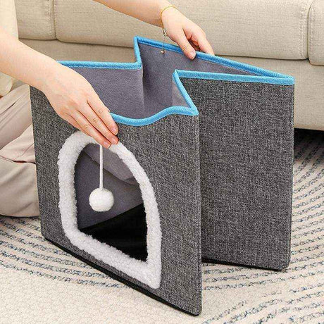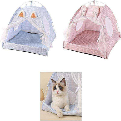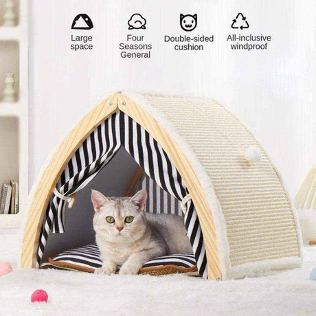 Foldable Cat House Tent Pet Villa Indoor Cat Shelter with Cushion Cat Litter Bed