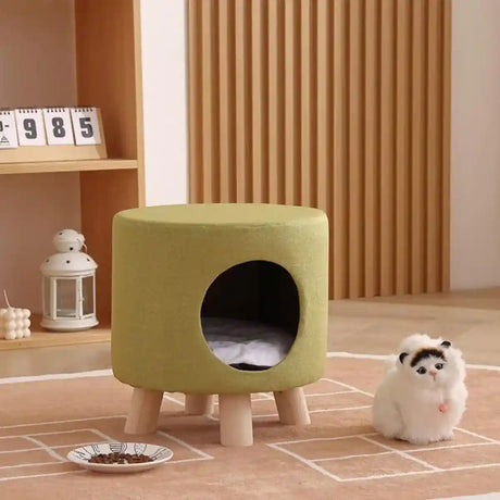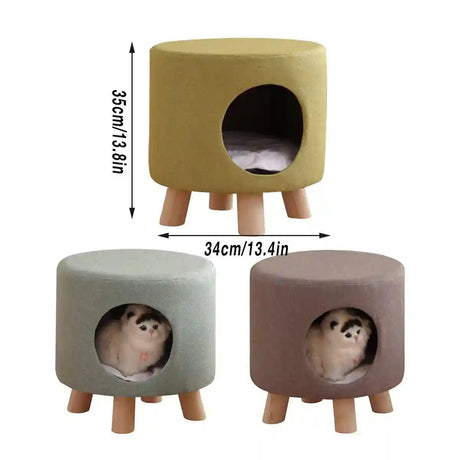 Wooden Cat Stool House Bench Pet Furniture Comfortable Cat Bed for Rest and Play