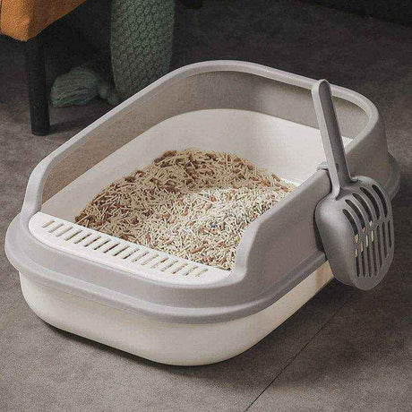 Spacious Open Cat Litter Box with High Sides for Low-Tracking Cleanliness