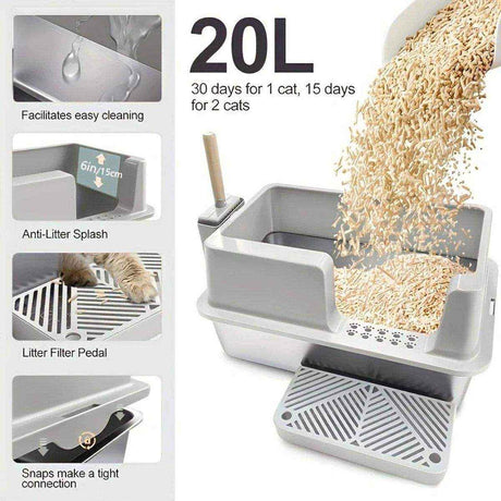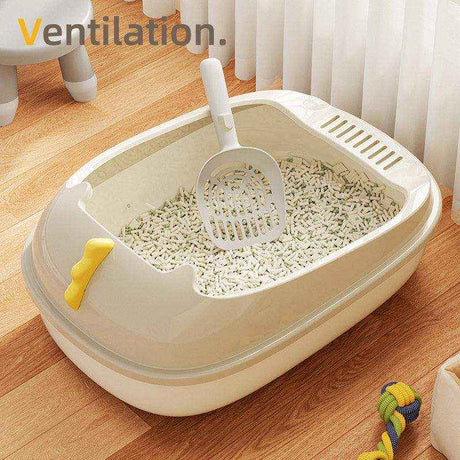 Odor-Controlled Cat Litter Tray with High Sides and Easy Access Entry
