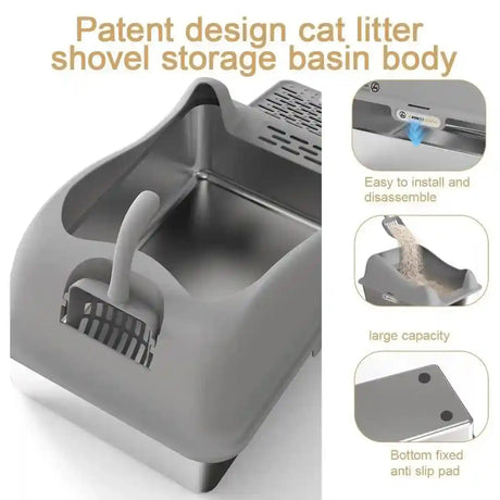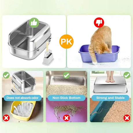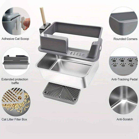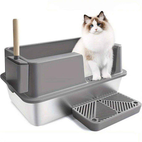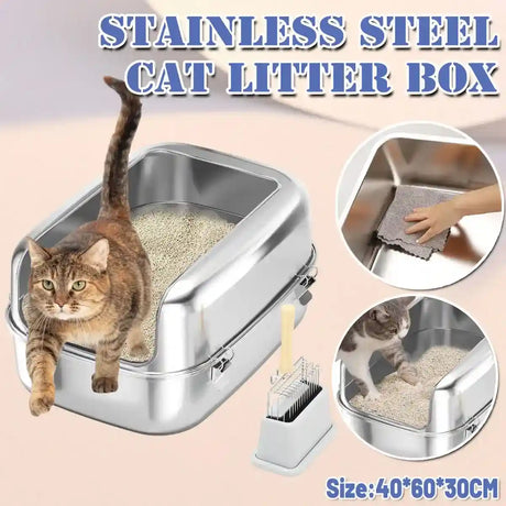 High-Wall Stainless Steel Cat Litter Box With Scoop