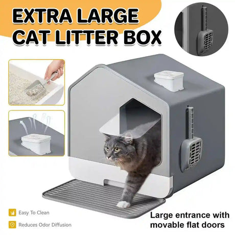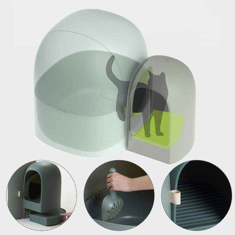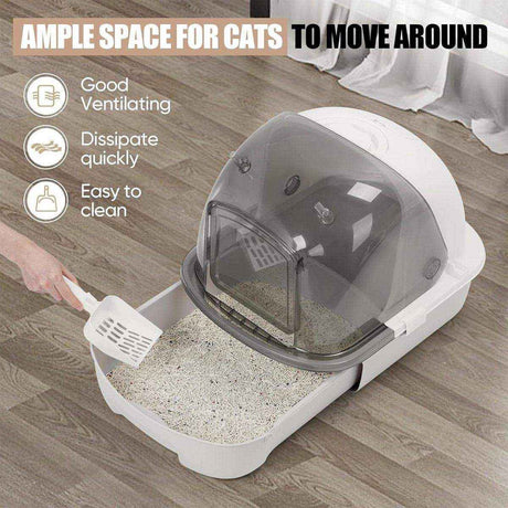 Fully Enclosed Cat Litter Box with Odour Control Adjustable Entry & Large Capacity