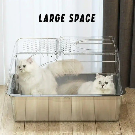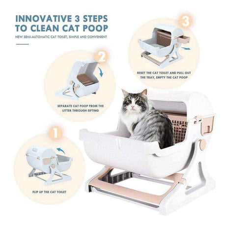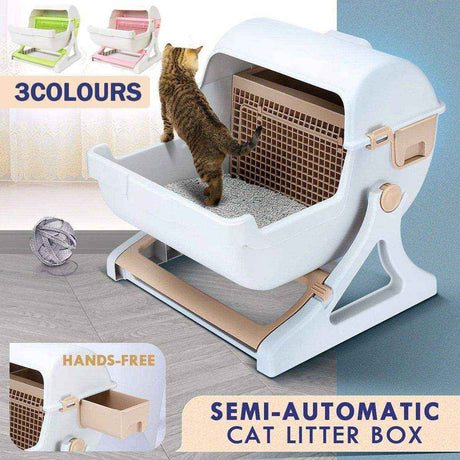 Semi Automatic Cat Litter Box Large Anti Splash Semi Enclosed Kitty Toilet