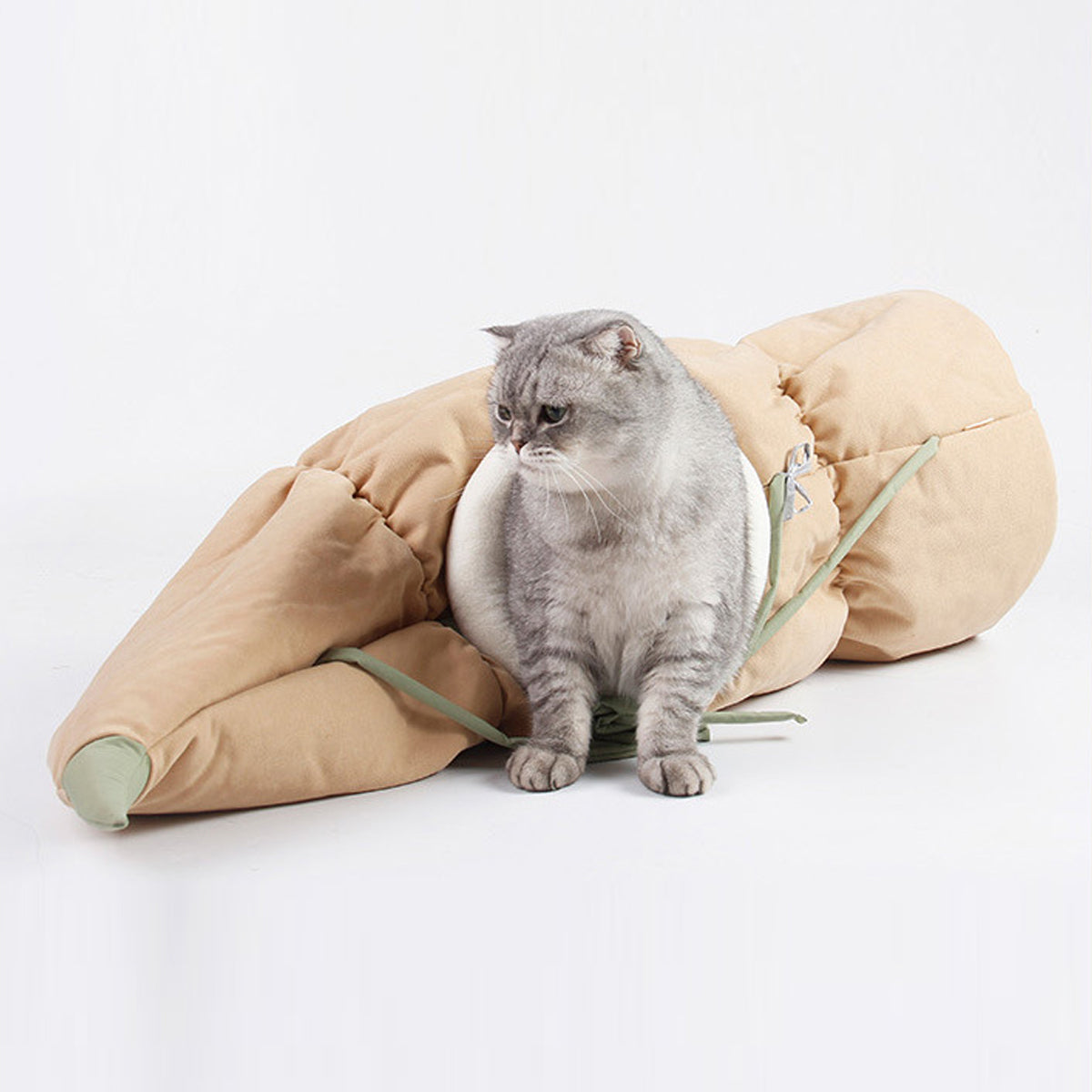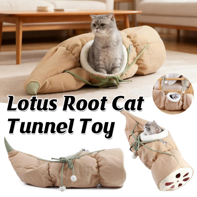 The Lotus Root Cat Tunnel Bed is a cosy 2-in-1 hideout designed for play, rest, and warmth. This Lotus Root Cat Tunnel Bed combines a soft cat cave with a fun tunnel, giving pets a secure space to burrow, nap, and relax. With a detachable inner tunnel and foldable structure, the Lotus Root Cat Tunnel Bed offers flexible use for daily lounging or interactive play, making it ideal for cats, kittens, and other small pets.