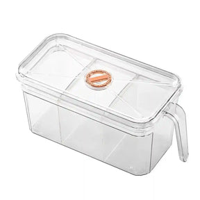 • Features: Three-division design, flip-top lid