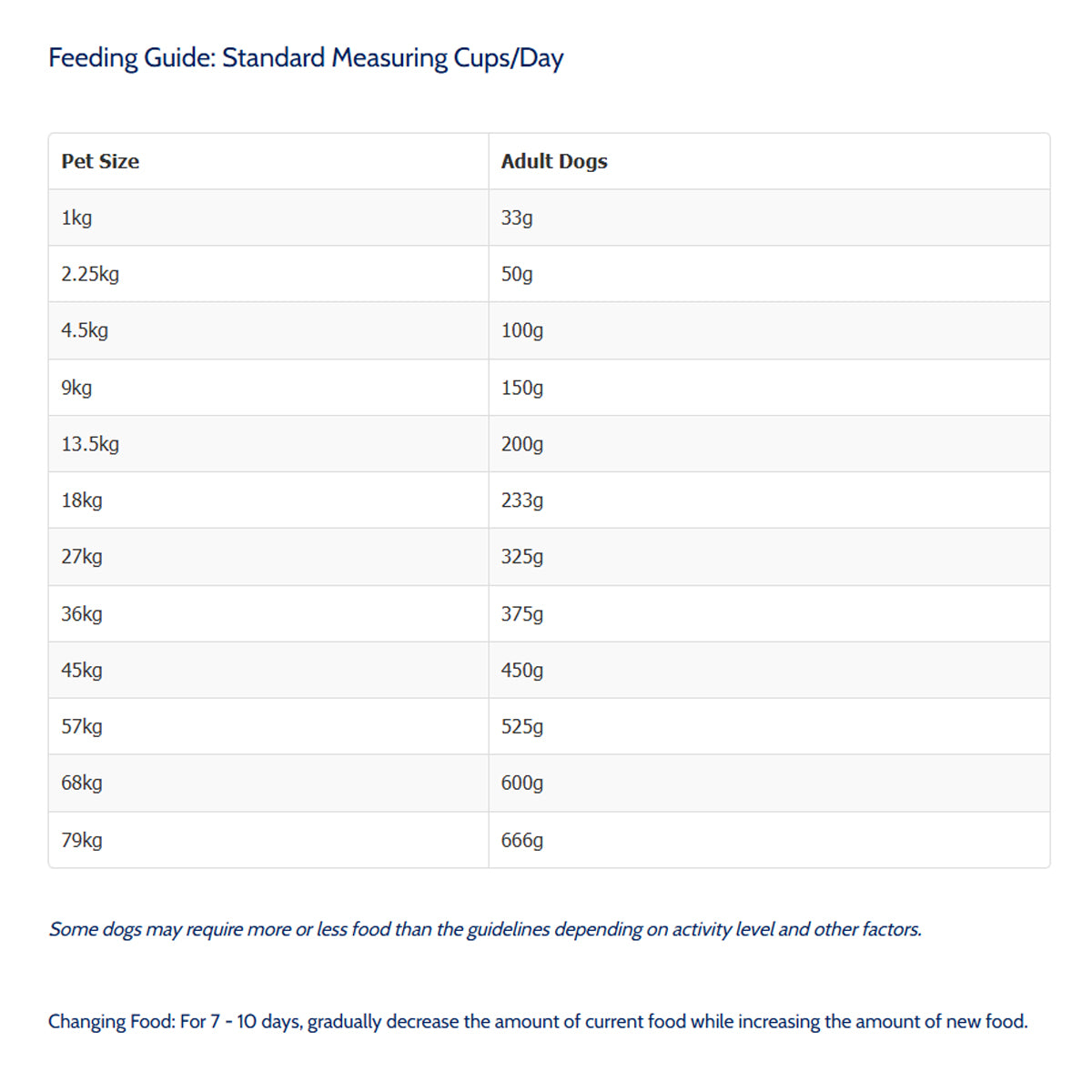 - Follow feeding guideline based on dog weight and activity level