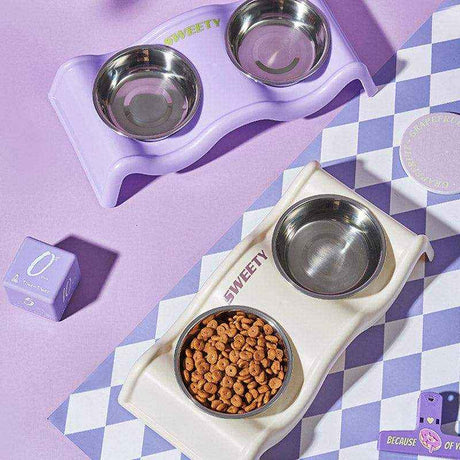Modern Double Feeder with Elevated Pet Bowl Design for Cats and Small Dogs
