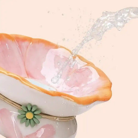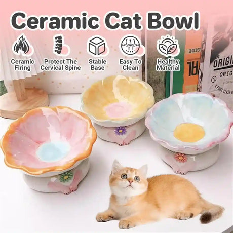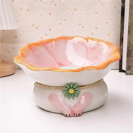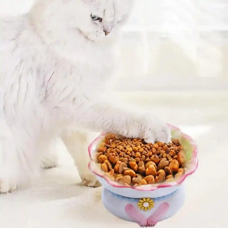 Elevated Ceramic Cat Bowl Anti-Knock Flower-Shaped Dish for Cats & Small Pets