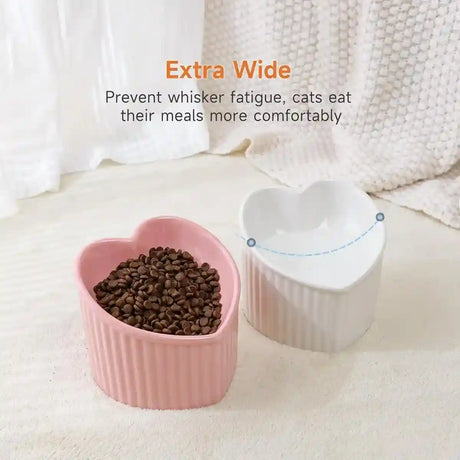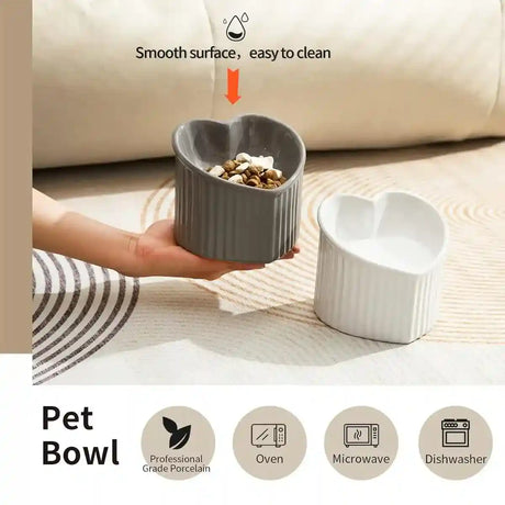 Heart-Shaped Ceramic Pet Bowl Elevated Cat & Small Dog Feeding Dish