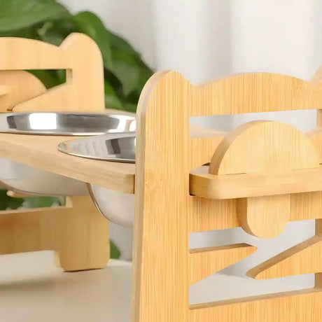Adjustable Bamboo Pet Feeder with Stainless Steel Bowls